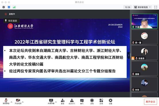 2022年12月29日,由江西省学位与研究生教育学会主办,江西财经大学、江西省高校管理科学与工程学科联盟承办的“2022年江西省管理科学与工程学术创新论坛”顺利举行。本次论坛共收到来自湖南工商大学、吉林财经大学、棋牌 APP