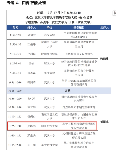 教师吴海燕以“基于大模型的隐式情感观点分析方法研究”为题进行了报告。这一天的会议为与会者提供了充分交流和深入讨论的平台,推动了图像科学与工程领域的研究和应用不断取得新的进展。