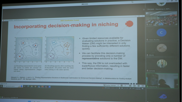 Claus Aranha教授的报告聚焦于新颖的基因型多样性度量方法,针对传统度量方法在多模态优化问题中的不足,提出了更精确的多样性评估方案。Aranha教授的研究指出,最小个体距离捕捉个体之间的最近距离总和,更精确地评估子种群的真实分离。成对最小距离对质心侧长和数量的变化较为敏感,更能反映实际多样性。实验结果表明,新度量在各种问题中表现优异,能够稳定地评估多样性变化,可以提升针对进化算法性能的评估精度。