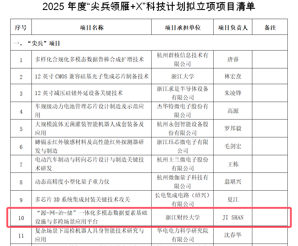 牵头、Ji Shan博士团队申报的“‘源-网-治-储’一体化多模态数据要素基础设施与多跨场景应用平台”获浙江省“尖兵”重大科技计划项目立项。这是棋牌 APP