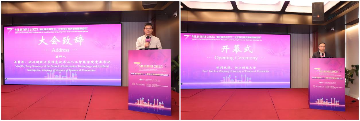 会议由林剑教授主持,吴翼泽书记代表主办方向远道而来的各位专家学者和业界同仁表示欢迎。他指出,当前我们身处数据驱动、智能引领的时代,机器学习等新一代信息技术正重塑产业、商业与社会格局,为全球发展注入创新动能。此次MLBDBI 2025国际会议是交流的宝贵契机,期待各方围绕机器学习的前沿算法、大数据的洞察挖掘、商务智能的创新应用等关键议题深入探讨,碰撞出创新火花。