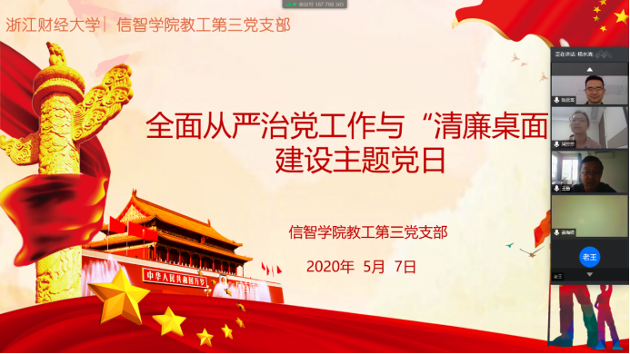 教工第三党支部在线开展全面从严治党与“清廉桌面建设”专题组织生活会,会议由支部书记杨水清主持,支部成员参加会议。