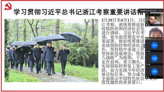 会上,老师们认真学习了习近平总书记在浙江考察时有关统筹推进新冠肺炎疫情防控和经济社会发展工作的重要讲话精神,以及总书记在复工复产考察调研时的指示要求。