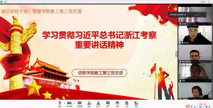 教工第三党支部开展理论学习,专题学习贯彻习近平总书记浙江考察重要讲话精神。会议由支部书记杨水清主持,支部成员参加学习。