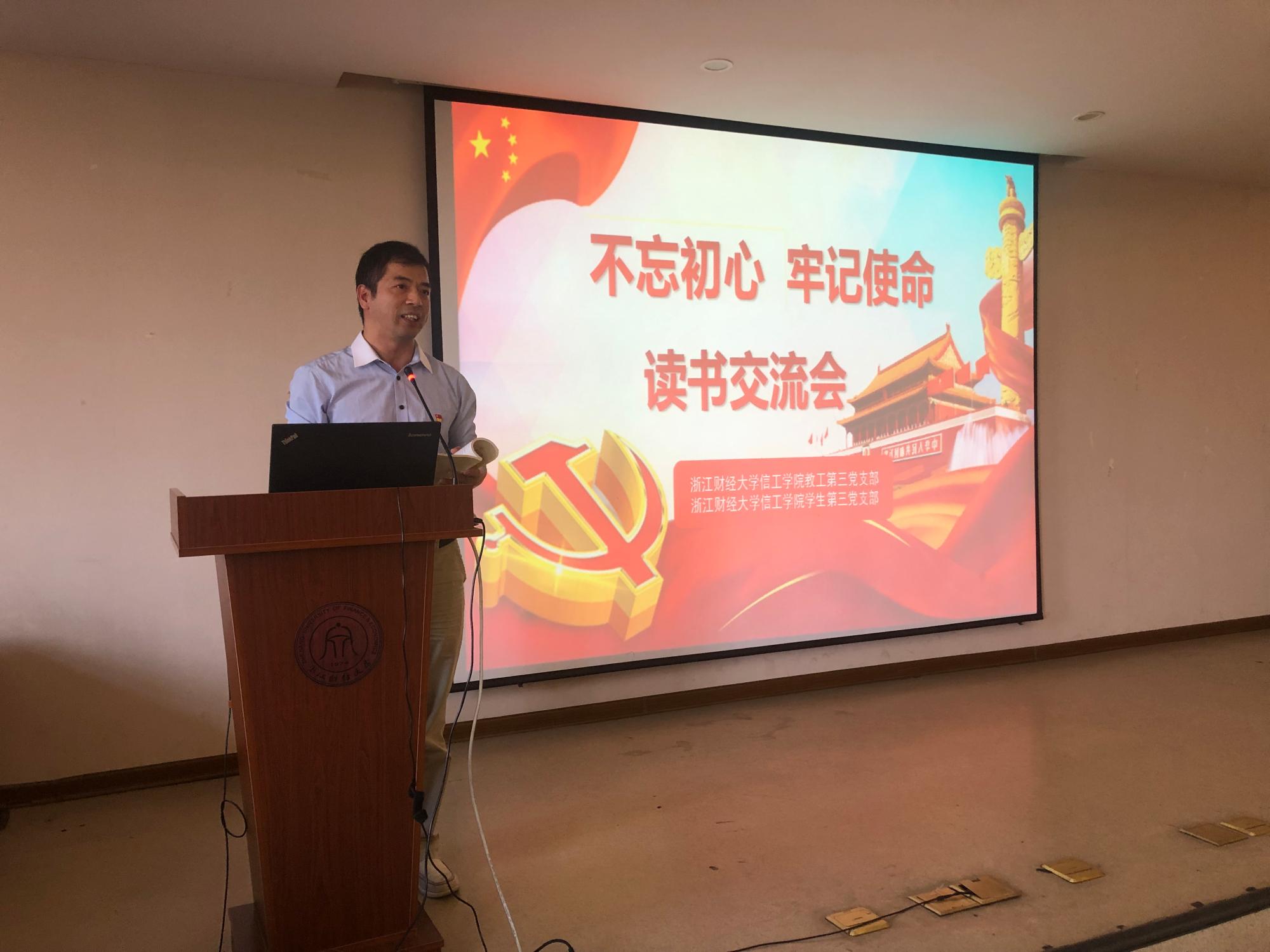 会上陈明晶老师分享了自己在阅读了《习近平关于“不忘初心、牢记使命”论述摘编》后的一些心得体会,师生一起进行了热烈的探讨交流,深化了对于党的认识。