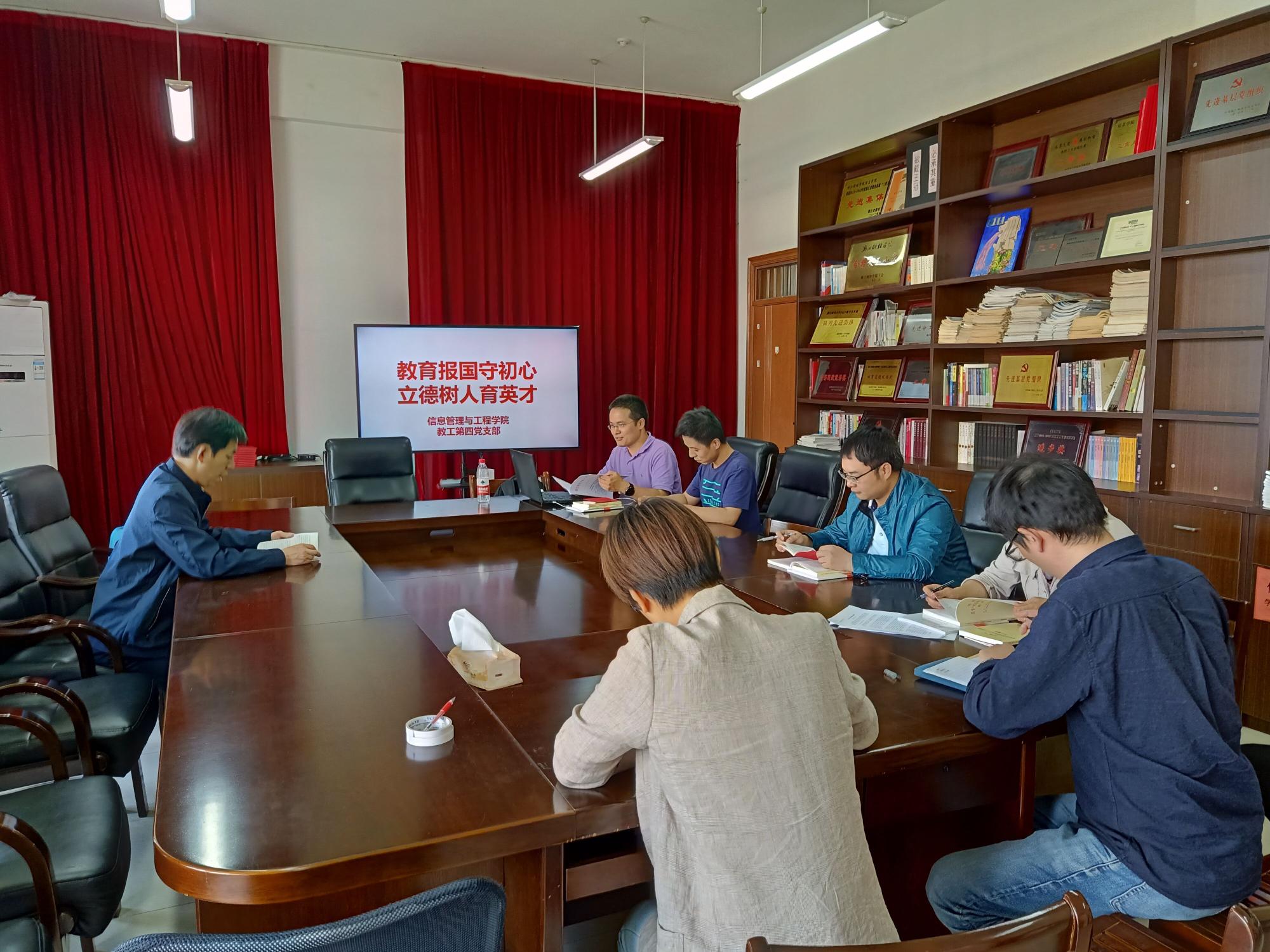 第四党支部组织全体党员教师在9506会议室开展“教育报国守初心,立德树人育英才”主题党日活动,引导党员教师立足岗位、履职尽责、争做表率,会上支部全体党员教师认真学习回顾了习近平总书记对教育工作的重要指示和精神。