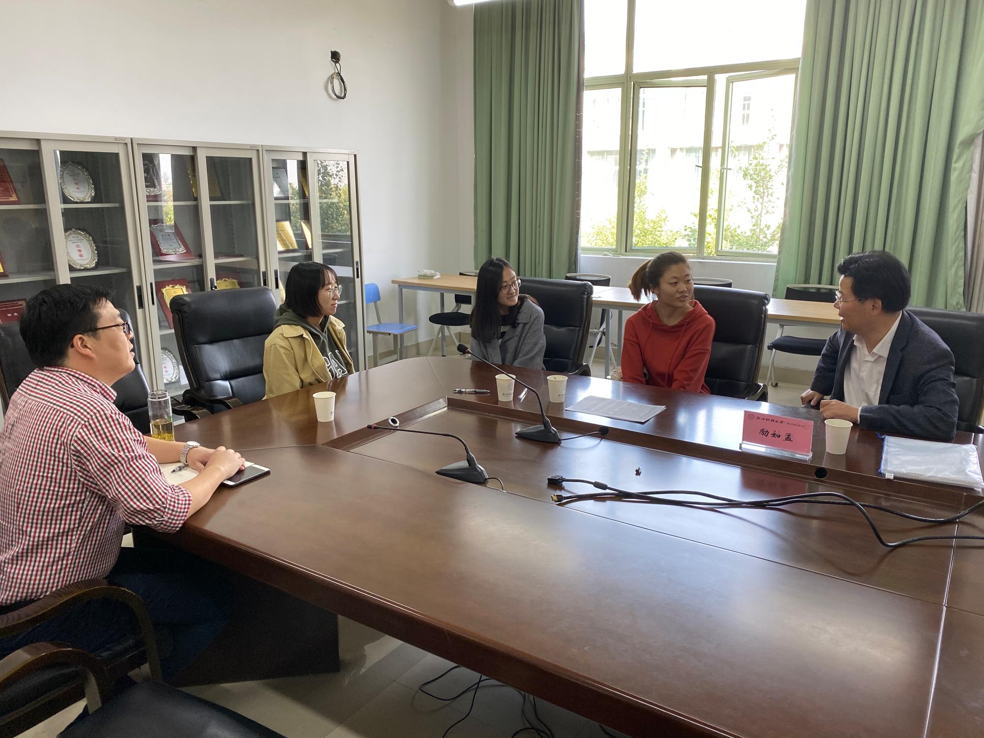 一番交谈后,三位同学都表示受益匪浅,并与励校长互留了微信,励校长也欢迎同学们可以通过微信与他多沟通交流,也可以到办公室来喝茶聊天。