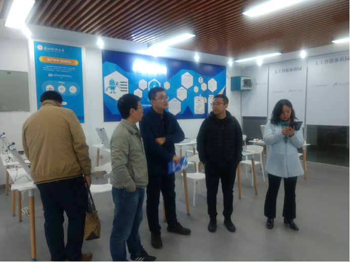 教学副院长孙福才老师等一行5人在达内教育集团大客户总监孙德洋的陪同下到人工智能体验园参观交流。