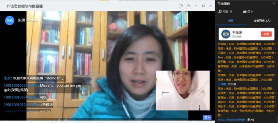 当讲台下一双双渴望知识的眼睛被一颗小小闪烁的摄像头取代的时候,这将是各位老师从来没有体验过的授课景象。虽然没有站在三尺讲台上,面对着的是冰冷的电脑屏幕,但是与学生的热情交流却从不间断。朱凌老师无论是通过语音连麦还是弹幕回答,都会尽可能地与学生互动,从而更好地掌握同学们的学习状况,适时调整自己的网络教学节奏,实现更佳的教学效果。无论是台前还是线上,朱凌老师一直踏实践行着自己立德树人的初心使命。或许线上授课会有诸多限制,但是朱凌老师还是通过各种方式来确保网上教学的质量。朱凌老师对于教育为本的那一份执着与热情,正通过互联网直接地、快速地、源源不断地传达到班级里身处全国各地乃至世界各地的每一位学生面前。