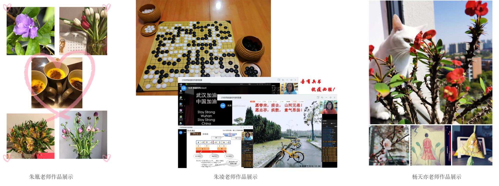女性教职工们纷纷展示自己在居家期间优秀的烹饪技术,完美的整理、园艺技能,以及认真为同学们准备网课的工作瞬间等等。