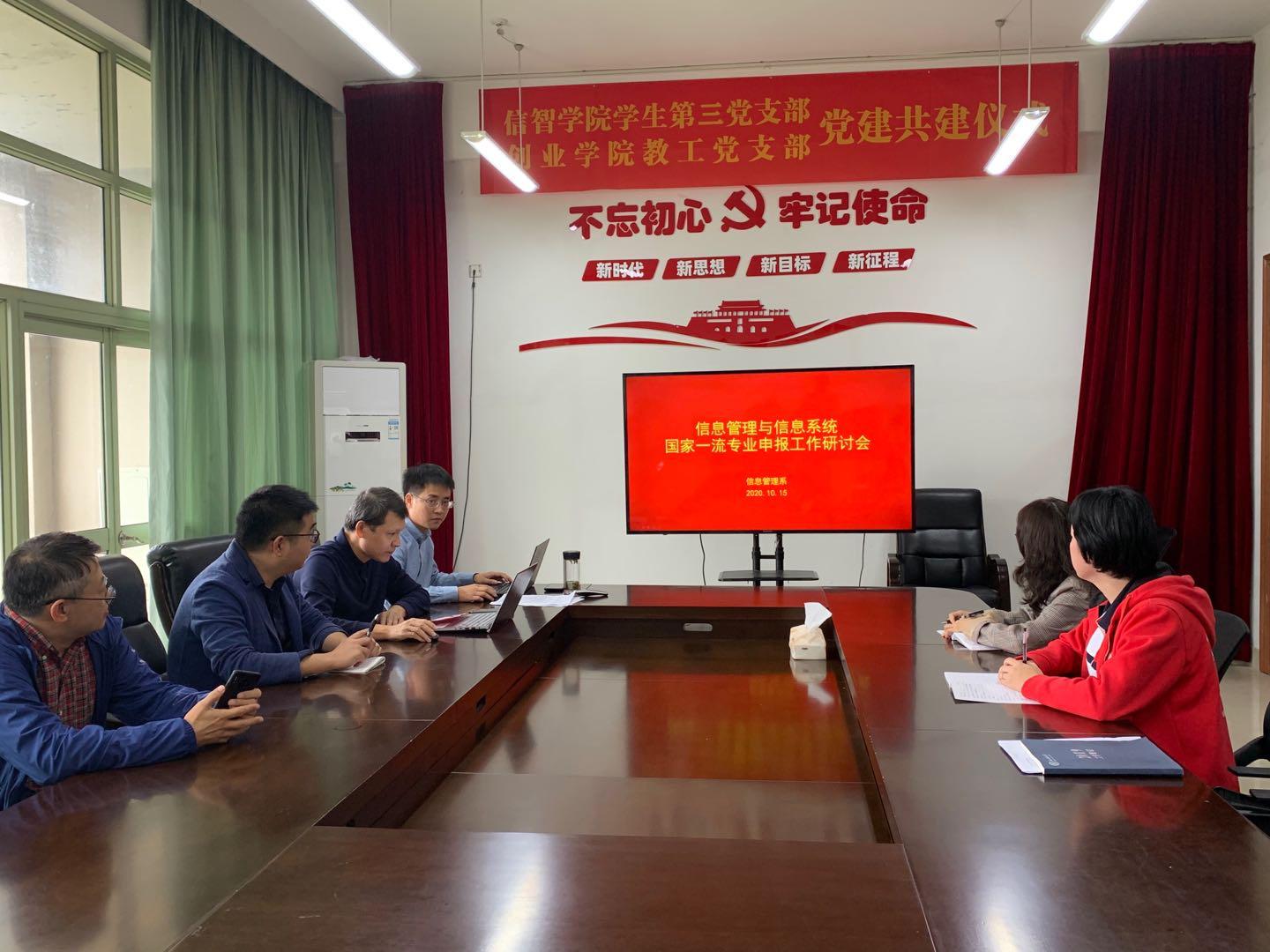 楼506会议室举行国家一流专业申报研讨会。信息管理系骨干教师参加了此次会议。本次研讨会主要围绕第一轮国家一流专业获批立项情况、申报书改进方案、关键时间节点工作安排等展开深入讨论。