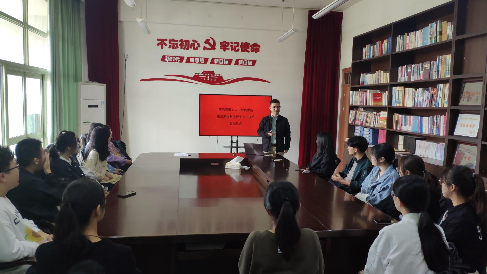 在9506会议室召开第三期拔尖人才项目启动仪式。仪式由拔尖人才项目班主任姜辉老师主持,教学副院长兼项目负责人陈远高教授致辞,项目班全体成员参加了此次开班仪式。