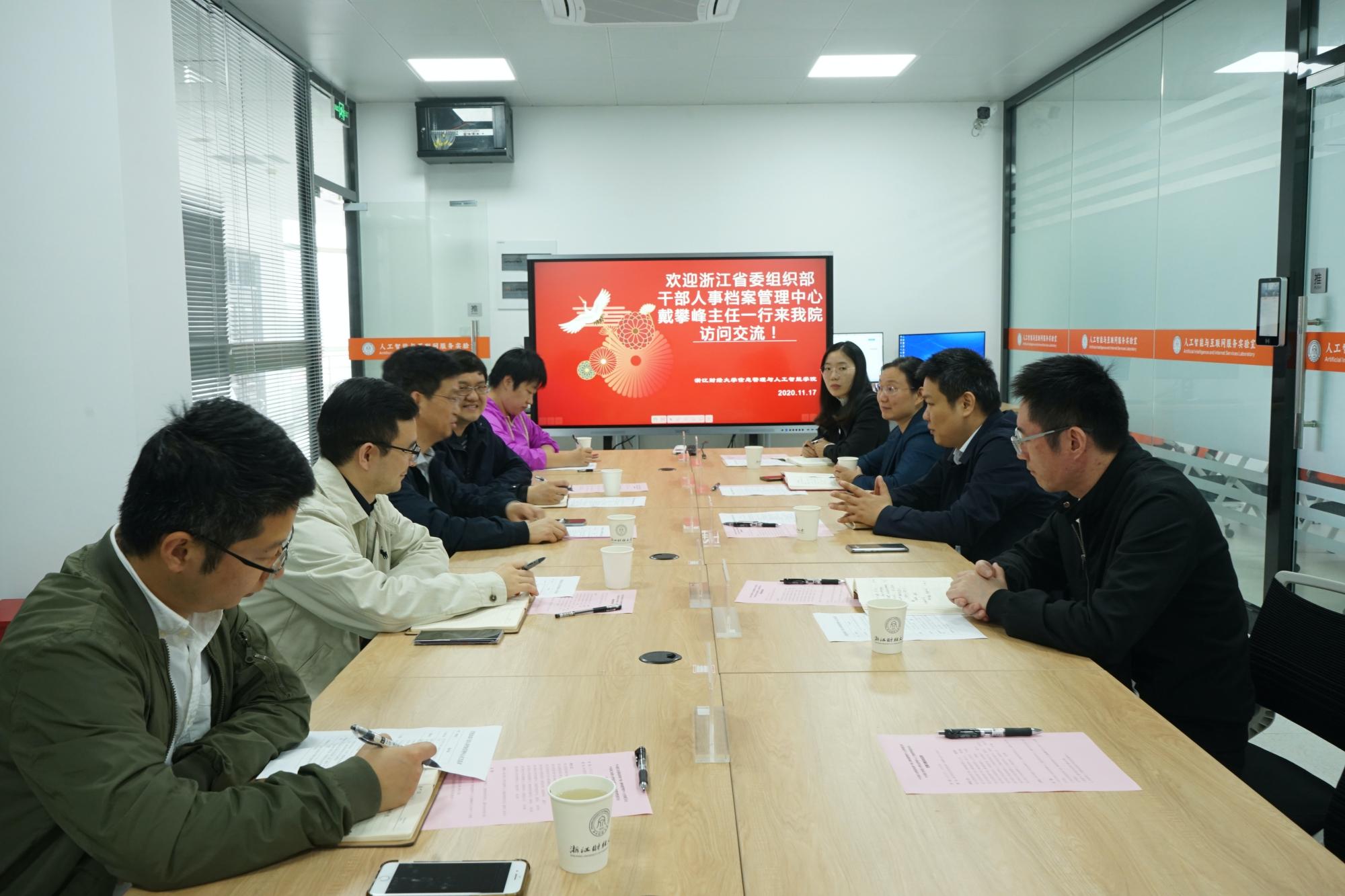 11月17日,浙江省委组织部干部人事档案管理中心主任戴攀峰,副主任陈淑媛一行4人来院访问交流。校党委副书记黄建新,校党委委员、组织部、统战部部长董进才,棋牌 APP