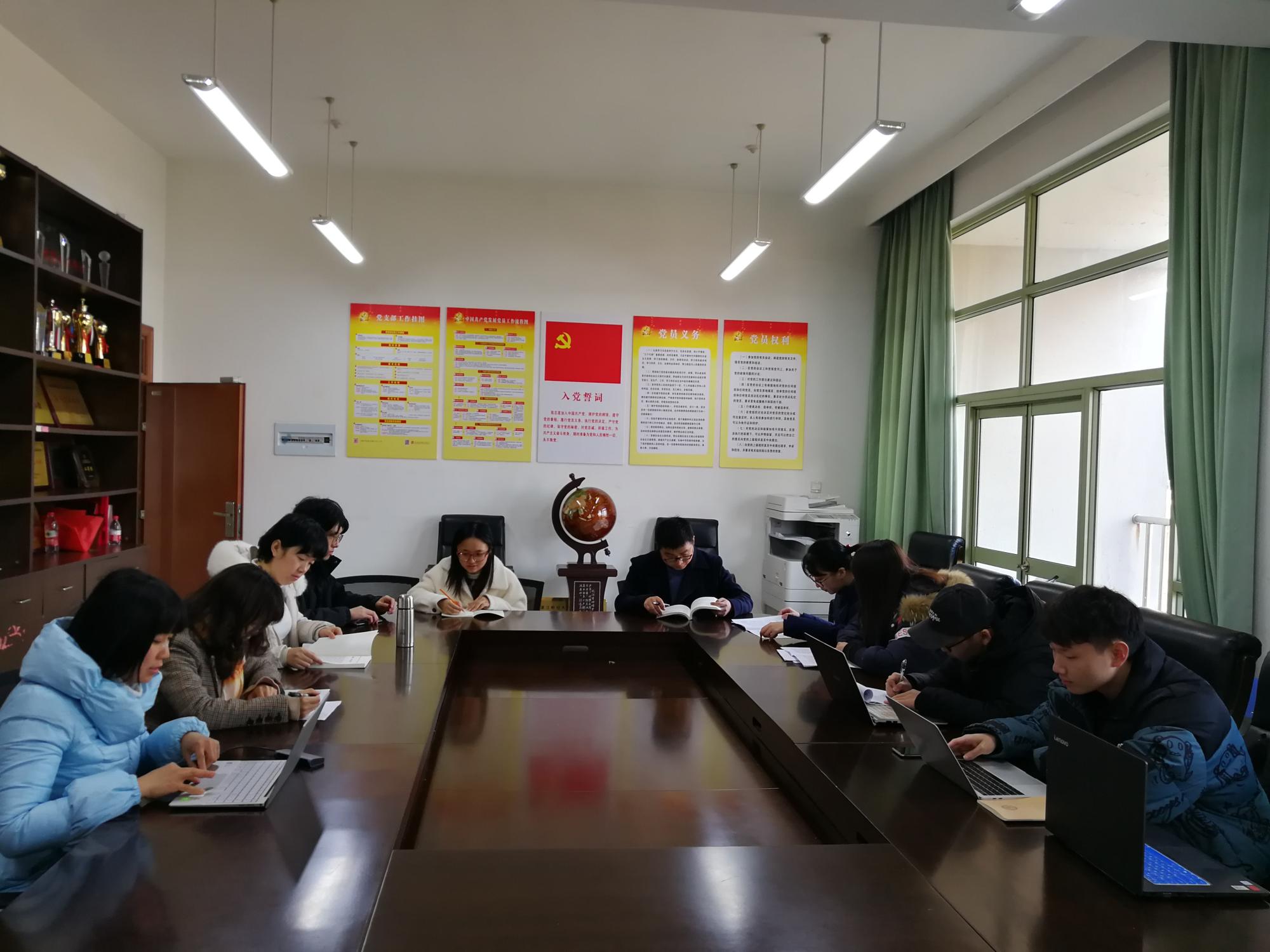 教工第一党支部在9506会议室组织师生开展“不负韶光 品阅清廉好书”主题党日活动。会议由支部书记朱凌主持,支部党员老师和部分学生代表参会学习。会上,朱凌老师带领师生学习了《习近平用典》、《习近平谈一带一路》、以及习近平总书记近期出版的一篇重要文章《一个国家、一个民族不能没有灵魂》等书目篇章。