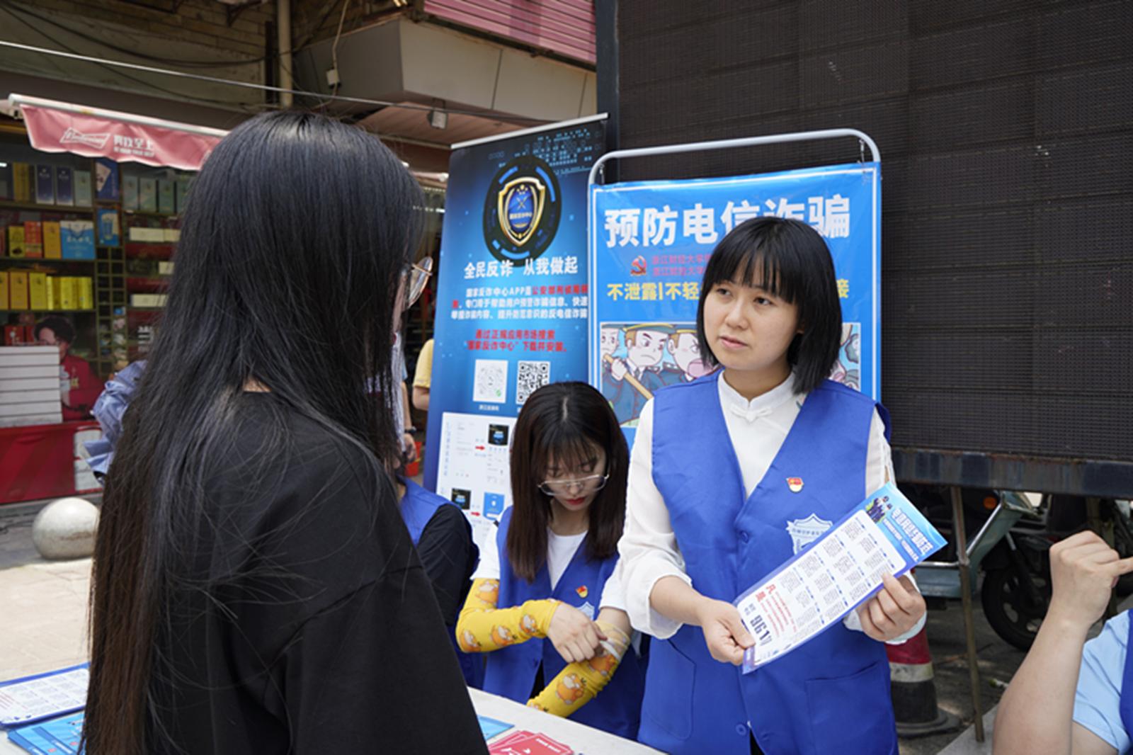 教工第一党支部联合学生第一党支部、学生第三党支部开展以“你我同心,反诈同行”为主题的防诈骗宣传主题党日活动,组织师生党员到金沙学府社区开展防诈骗宣传活动。
