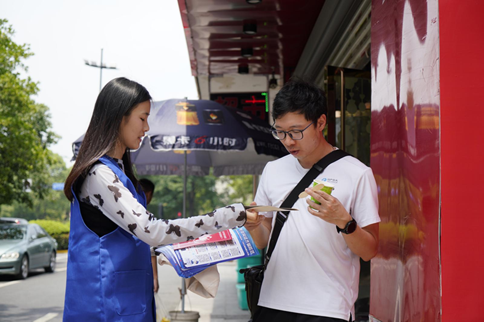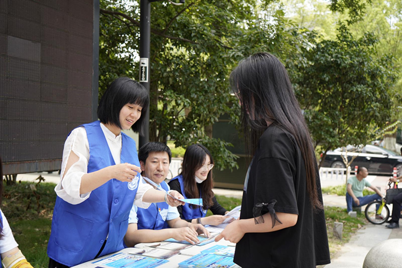教工党员与学生党员通过分发防诈海报和宣传单的形式,向社区居民介绍反诈知识和防诈技能,并科普和引导大家下载“国家反诈中心”APP,提醒居民在做好自身防范的同时,积极向家人、亲朋好友宣传,提高身边人的防诈骗意识,营造“防诈宣传,人人参与”的良好氛围。