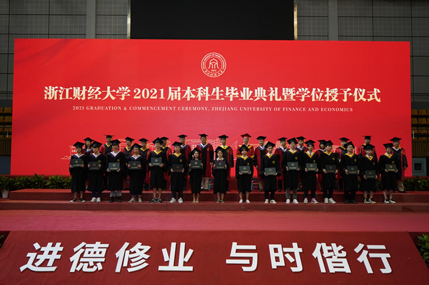 随后,老师们为每位毕业生颁发了学位证书,并为他们逐一拨穗正冠,授予学位,合影留念,热烈祝贺他们顺利毕业,祝愿他们在未来能大展宏图,为母校争光。毕业生们也纷纷表达了对自己谆谆教导四年的老师们的感恩与祝福,表示自己定不负母校的辛勤培育和殷切期望,努力成为国家和社会的有用之才。
