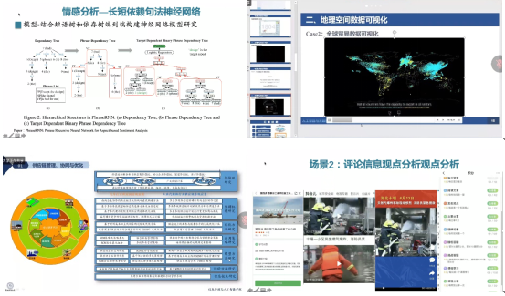 研讨会由研究所所长张林主持,张志强教授团队、邓胜春教授团队、周志光教授团队分别分享了团队的研究内容,并与昆仑数智各部门人员进行了深入探讨和沟通。张志强教授分享内容为非一致性数据和不确定数据的管理,从真值发现和不确定数据查询两方面进行了研讨。之后吴海燕博士对自然语言处理的相关内容进行了线上研讨,并与昆仑数智的技术人员在NLP情感分析、智能推荐算法等领域进行了深入探讨。邓胜春教授主要展示了团队在商务智能与数据挖掘、供应链管理协同与优化、数字化系统互操作及语义、物联网RFID中间件、知识图谱五个领域的主要成果。周志光教授聚焦在虚实融合环境下复杂特征增强可视化关键技术,包括地理空间数据可视化和三维空间数据可视化两大部分。
