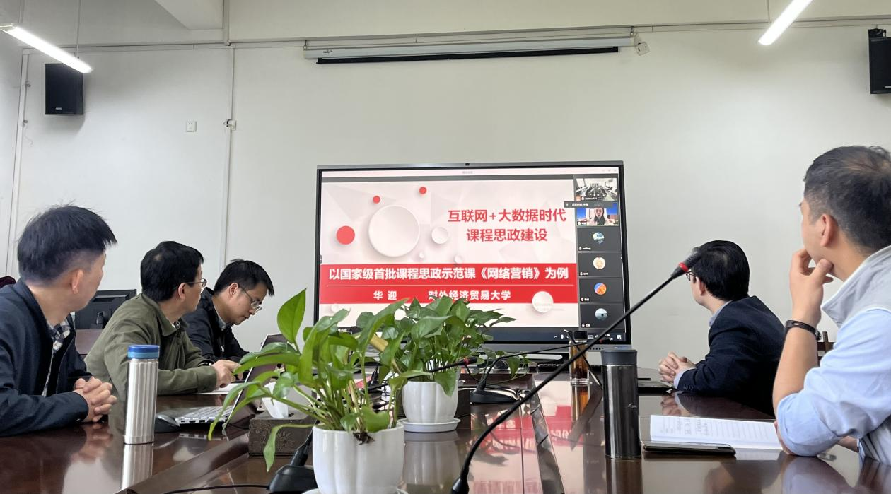 以《网络营销》课程为例,华迎教授简述专业特色视域下的课程思政设计方案,将课程目标与育人目标相结合,提出教学设计应涵盖学科文化、职业素养、探索创新、劳动教育等内容,并以自己的教学经历为引,介绍企业实例启发学生思考方法。