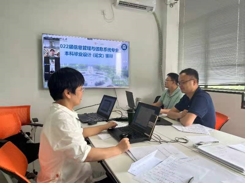 2022年5月31日下午信息管理系举行了2022届信息管理与信息系统专业本科毕业设计(论文)答辩。本次答辩共分为四组进行,线下和线上方式相结合,由每组答辩组长安排答辩。除本系专任教师之外,本次答辩邀请了五位行业专家出席,包括卓沃网络科技(上海)有限公司项目总监吴小莲、思爱普中国有限公司(SAP)高级项目经理/方案架构师曹凯、杭州硕德软件有限公司部门经理唐晓斌、中银基金管理有限公司项目经理孙志勋和上海硅禄信息科技中心SAP实施总监张士录。