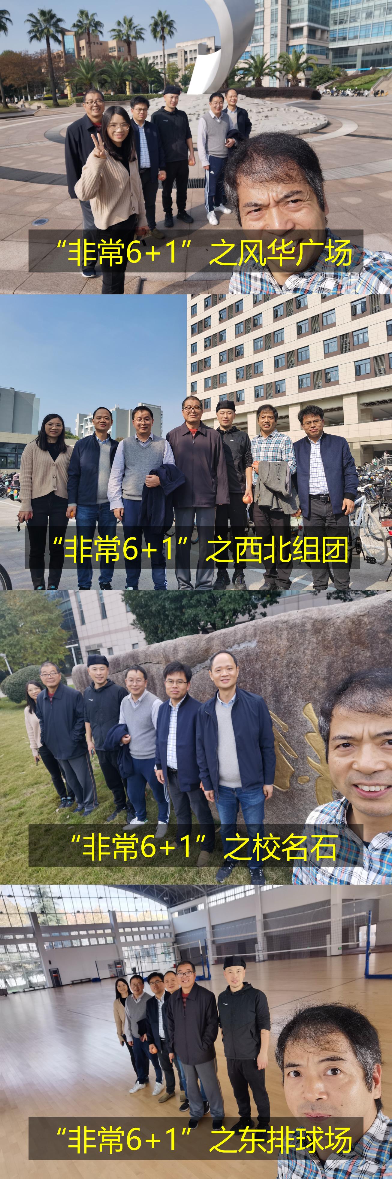 的发展。老师们走过图书馆风华广场,再参观新盖的西北宿舍楼,经过安静祥和的北门小路,再穿过东操场看看新修的东体育馆。大家边走边交流工作、学习和生活的点点滴滴,时而停下脚步与校园里飘落的梧桐叶、金黄的柚子、绿色的香樟合影,一路上洒满了欢声笑语。
