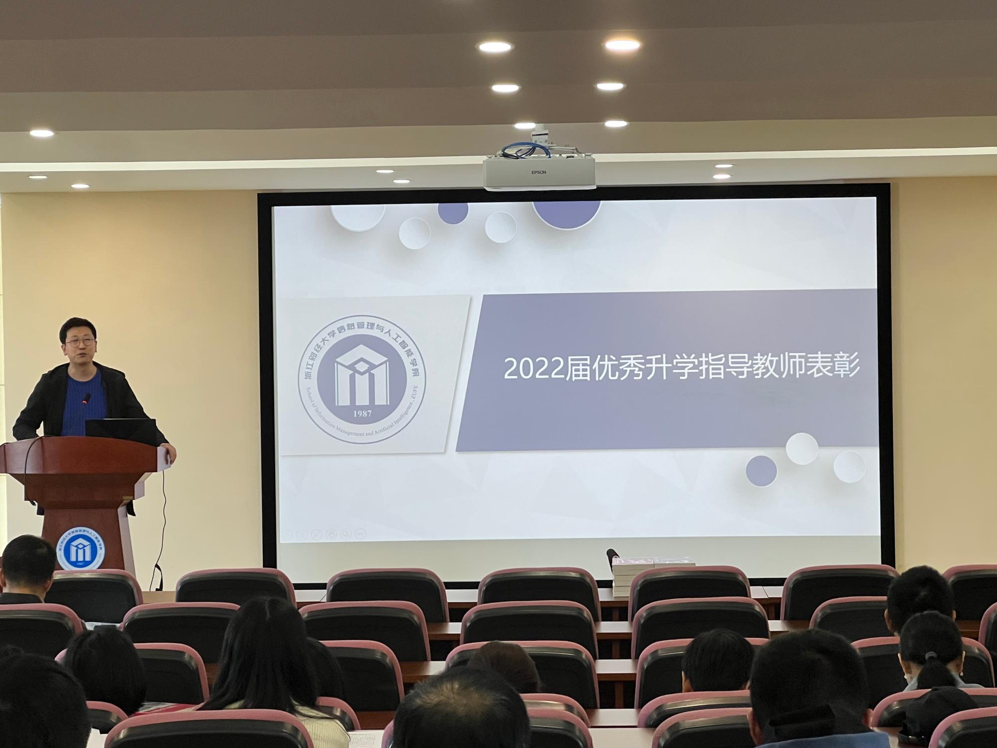 田聪副书记主持优秀升学指导教师表彰大会,通报2023年本科生考研情况,并宣讲党风廉政第一课学习的相关要求。