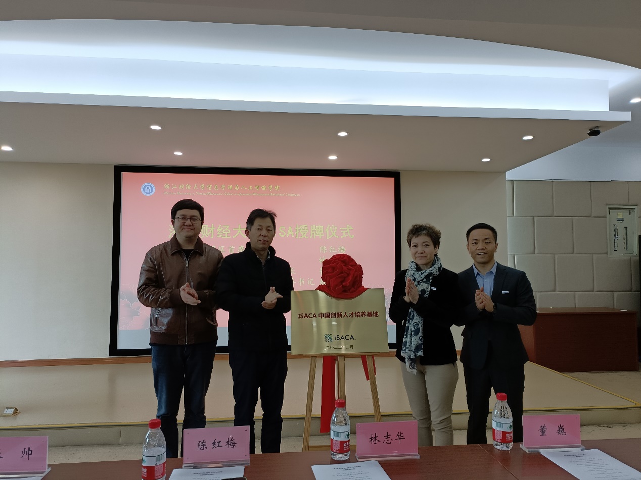 和ISACA中国区的合作授牌仪式,开启新一轮的全面合作。ISACA中国区首席代表陈红梅、业务发展总监林志华,中汇会计师事务所(特殊普通合伙)培训中心负责人董巍,棋牌 APP