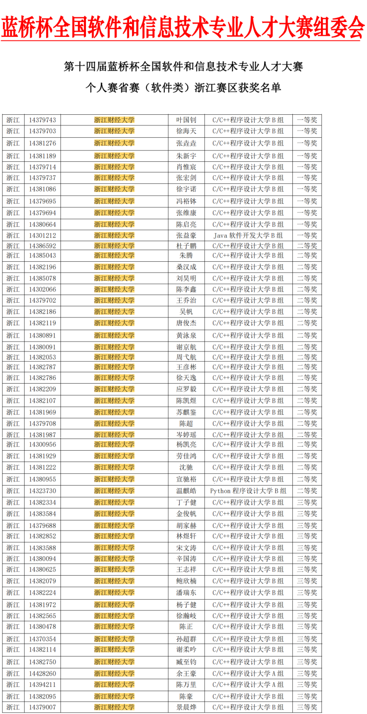 第20届浙江省大学生程序设计竞赛参赛名单: