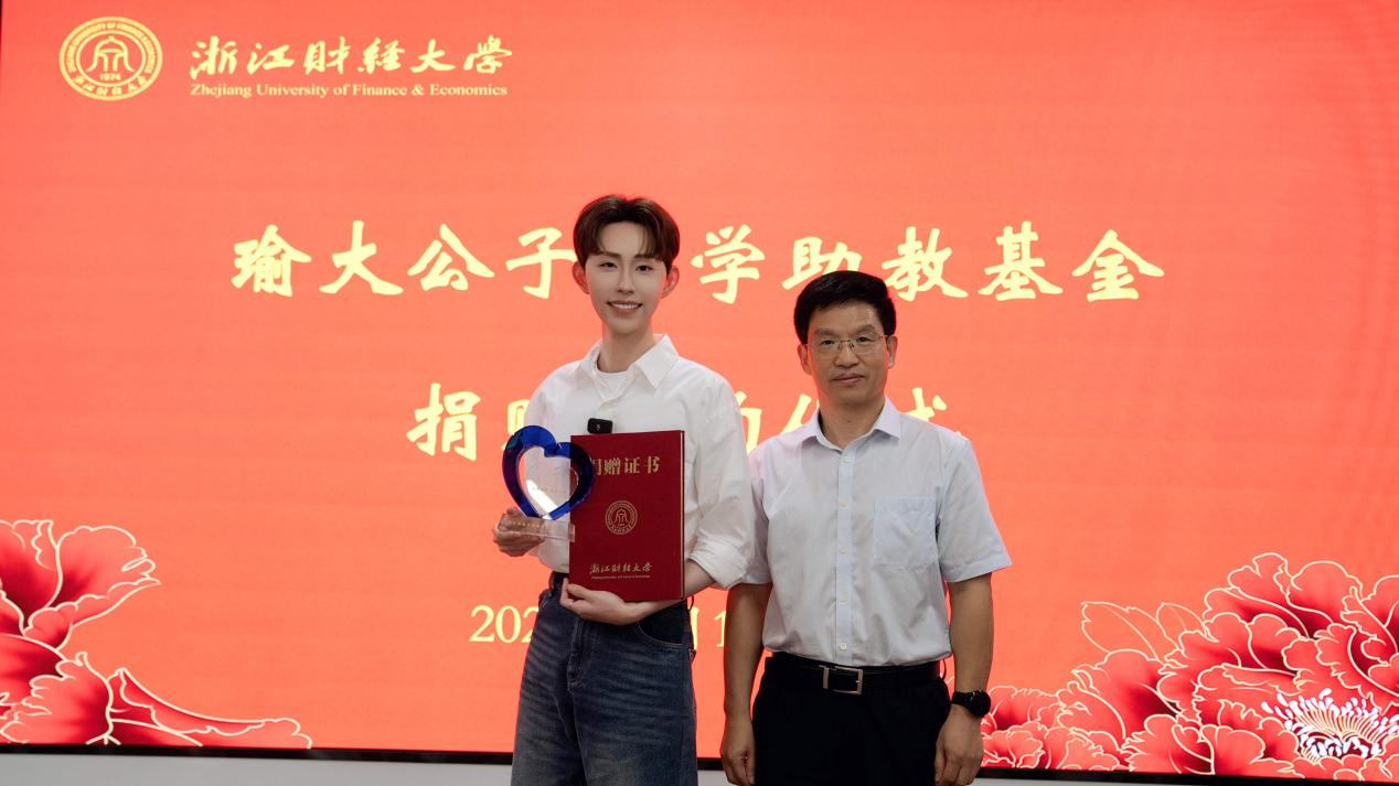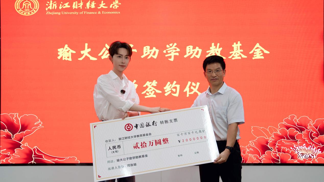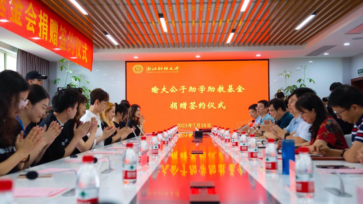 捐赠20万元,设立“瑜大公子助学助教”基金。校党委委员、副校长董进才,杭州遥望网络科技有限公司副总裁梁佳、首席主播瑜大公子等负责人出席仪式。