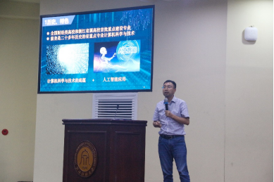 人工智能系主任陈琰宏老师,陈老师介绍了人工智能专业——是全国财经类高校和浙江省属高校首批重点建设专业,是将计算机基础与人工智能应用相融合的专业。然后详细介绍了培养的三个方向:智能金融(经济),智能物联网与机器人,智能信息处理(软件开发)。最后对学生的大学生活进行了美好祝愿。