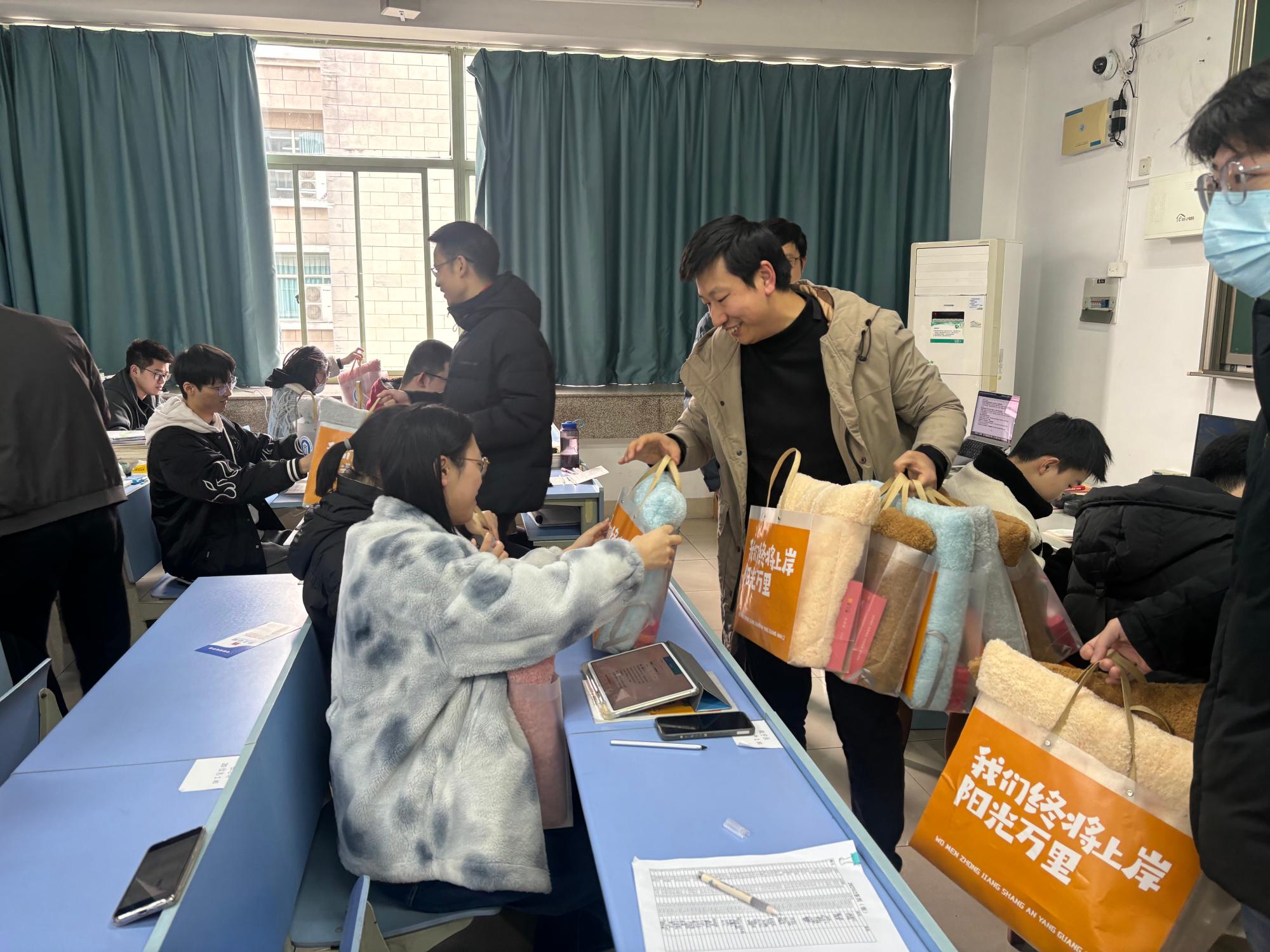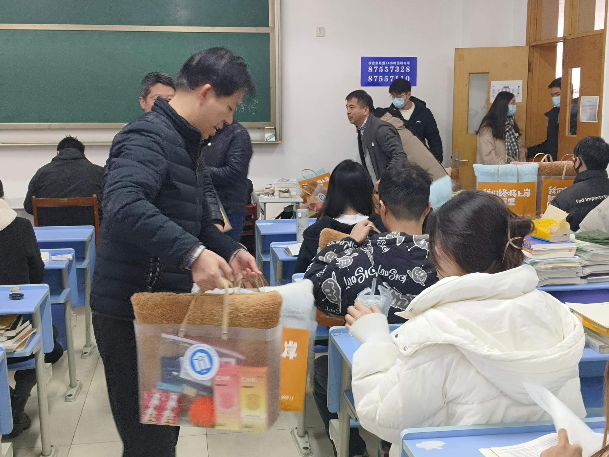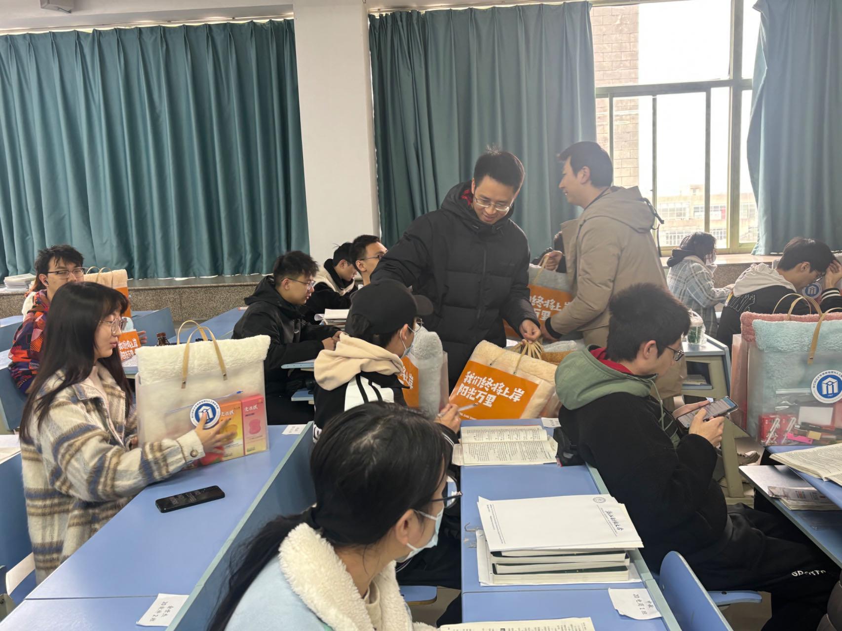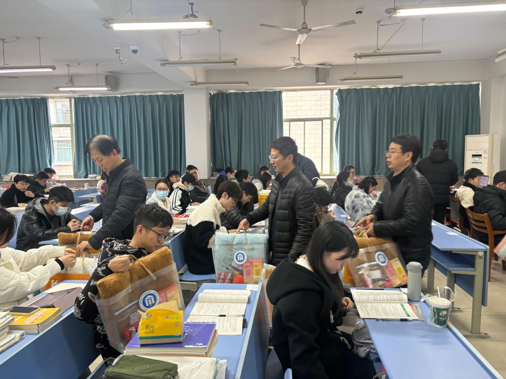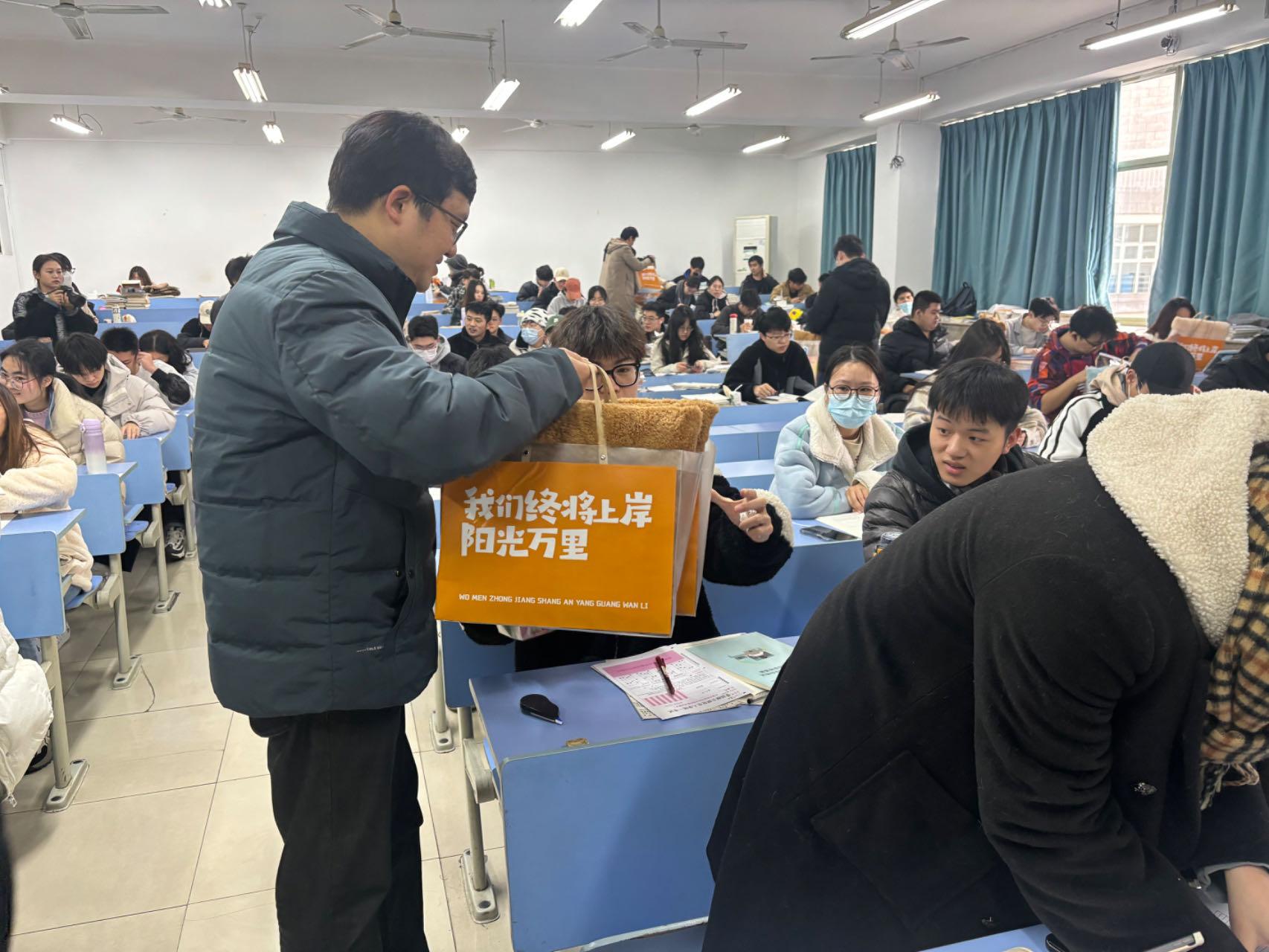 辅导员洪宝华、徐军军、马硕、吴泽勇、史光花老师一行前往考研教室,为即将踏上考场的学子送去鼓励和祝福。