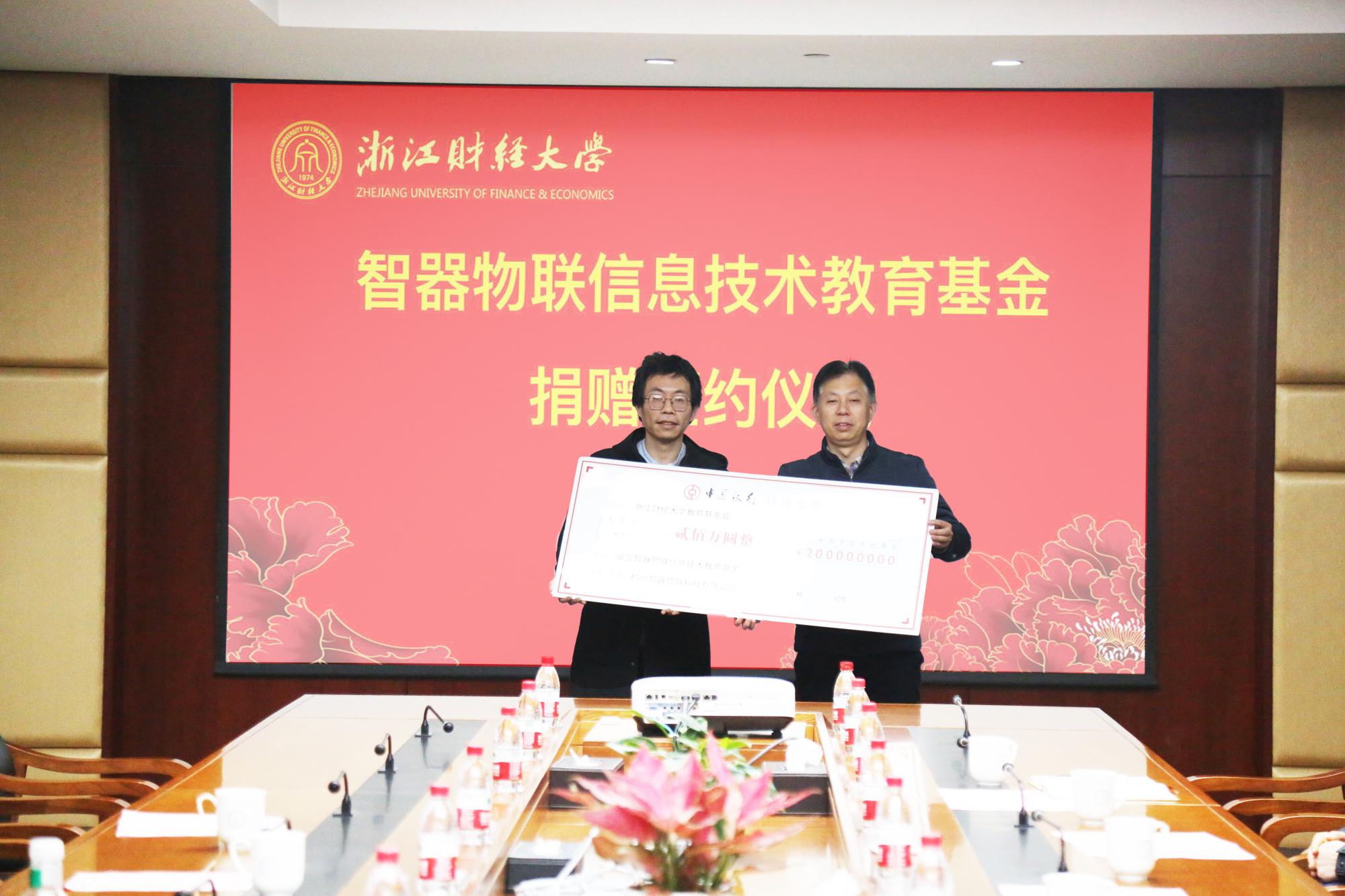 捐赠200万元,设立“智器物联信息技术教育基金”。校党委副书记徐晓东,杭州智器物联科技有限公司董事长、2007届校友徐佳路,校发展联络办公室,校友办公室负责人,棋牌 APP