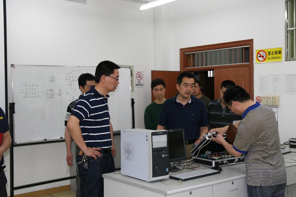 信息实验中心的各个实验室,饶有兴趣的体验了新式的实验教学仪器设备。