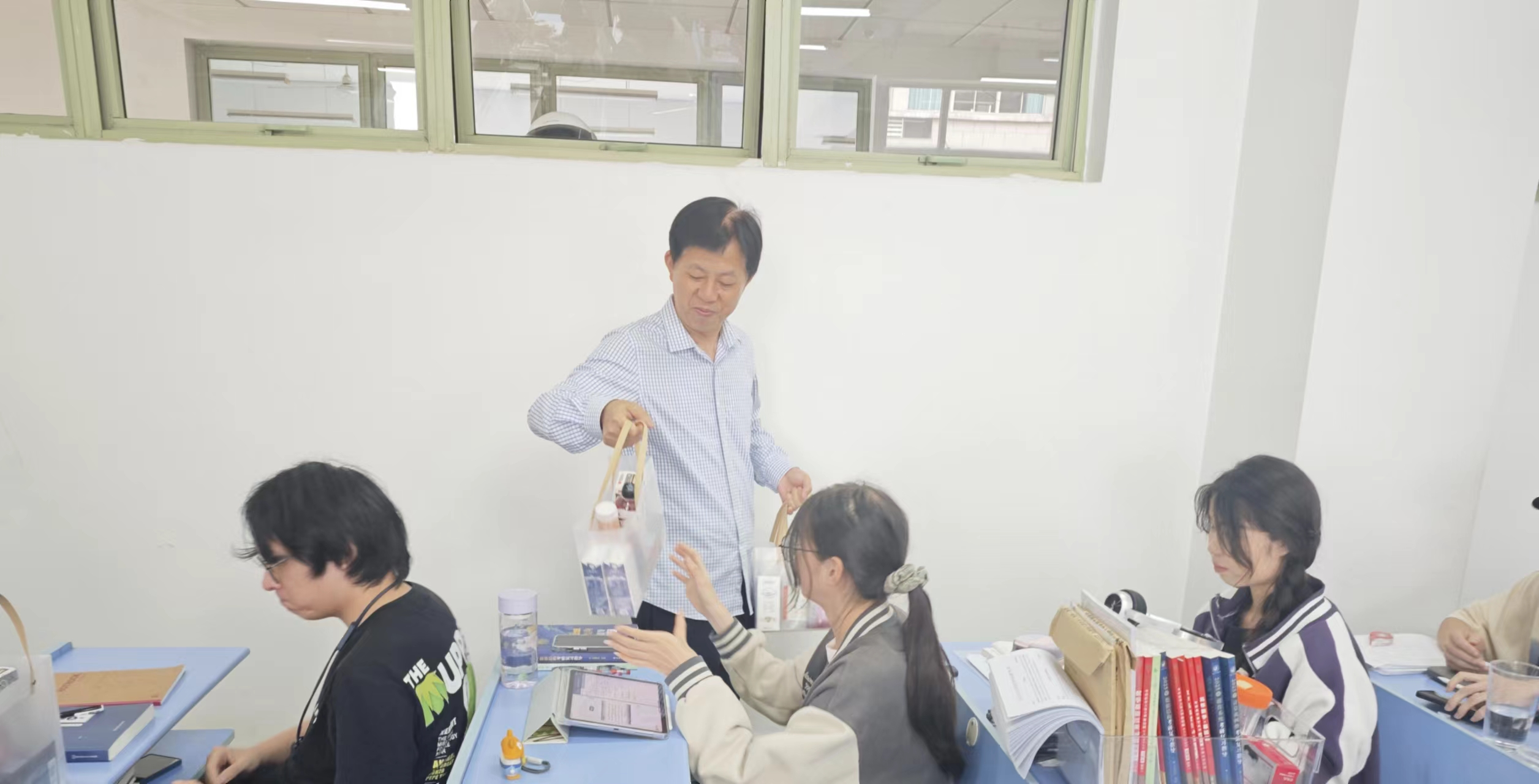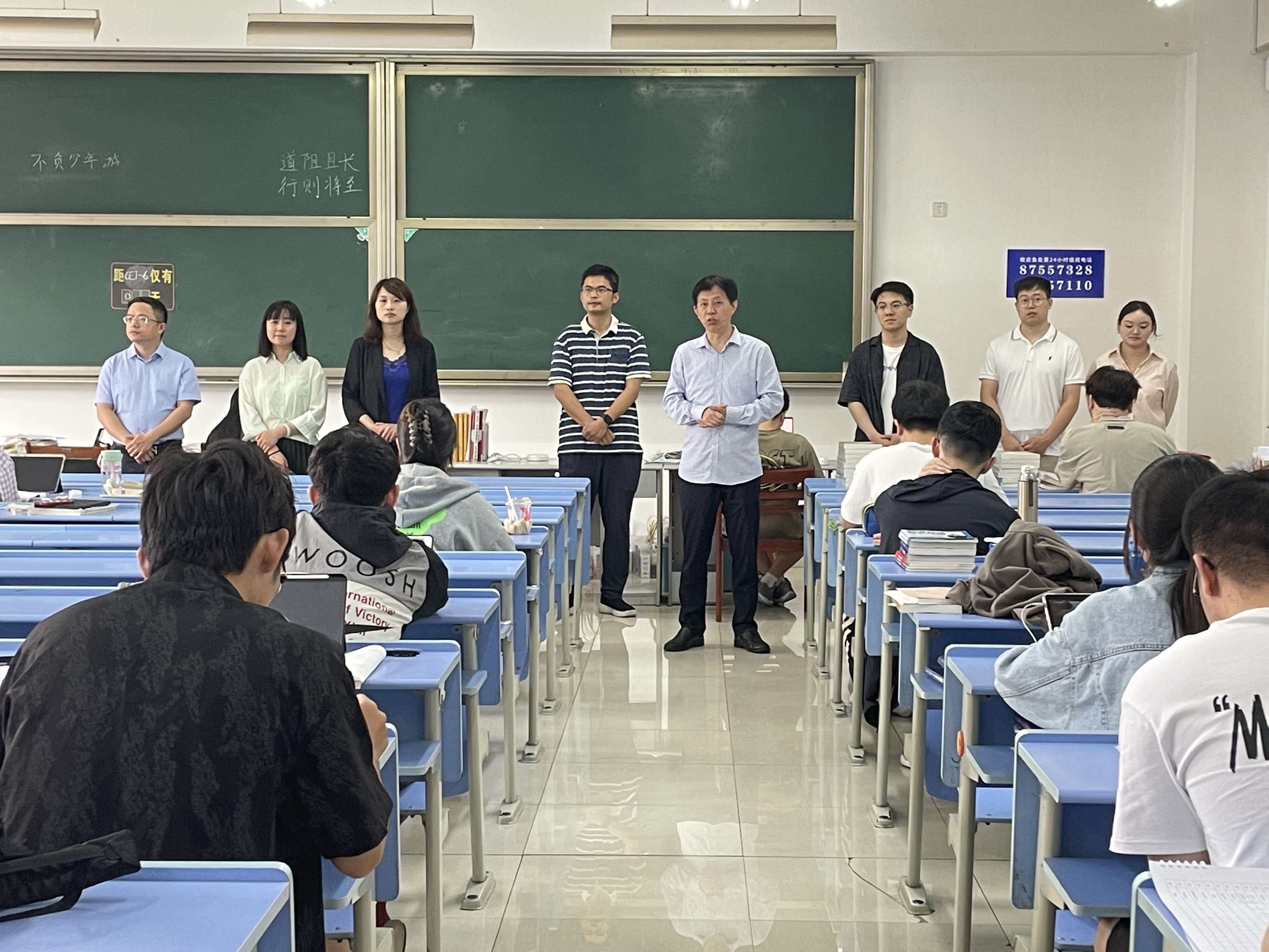 院长张帅、党委书记吴翼泽、副院长林剑、朱凌、党委副书记吴轶韵及辅导员深入考研教室,为正在紧张备考的2025届学生送上关怀与祝福。