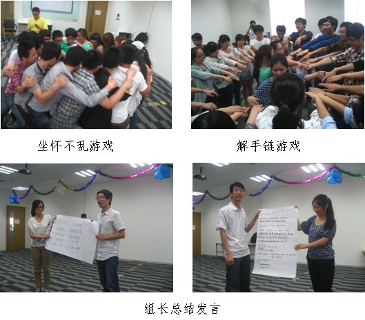 下午两点,进入最后一个环节-团队合作训练。在Infosys员工的组织和带领下,同学们以团队形式共同完成了“坐怀不乱”、“松鼠钻树”、“解手链”等三个游戏项目,并请每个组组长上台进行总结发言。同学们纷纷表示,这些团队游戏让大家深切感受到了团队合作的重要性,受益匪浅。