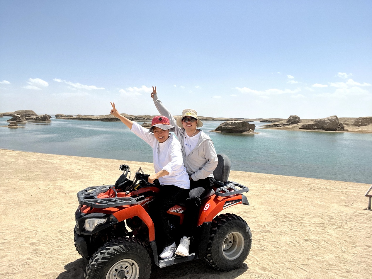 7月8日聚焦青海核心自然景观:上午抵达中国最大咸水湖青海湖,湛蓝湖面与雪山、草原相连,微风拂过波光粼粼,老师们沿湖漫步,青草气息驱散疲惫;午后前往“天空之镜”茶卡盐湖——曾入选《国家旅游地理》“人一生必去的55个地方”,平静湖面倒映天地与身影,老师们脱鞋入浅滩拍“人在镜中走”的创意照,欢声笑语回荡盐湖上空。