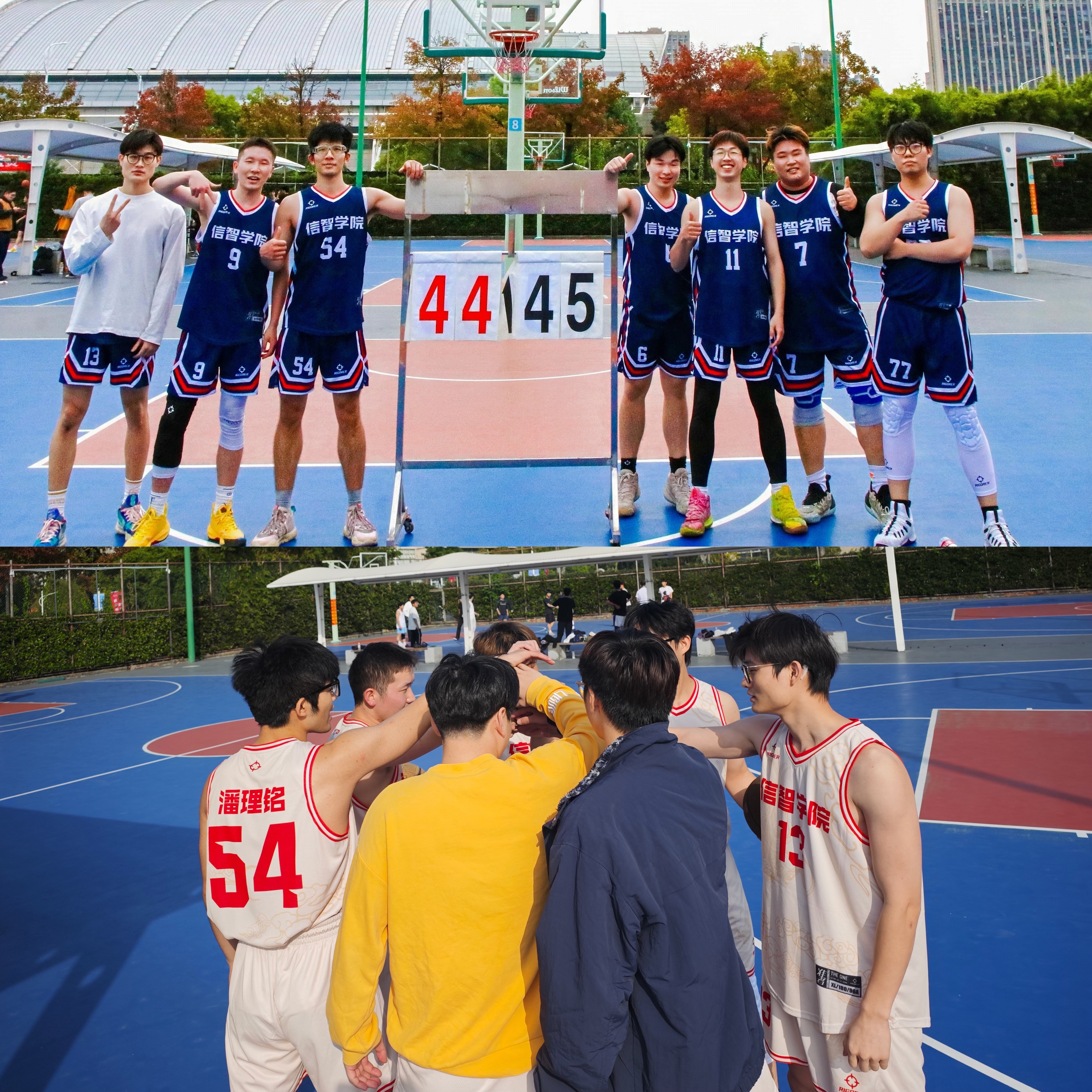 的对抗中,比赛进程因场地与天气原因一度被迫中断。赛事封表、节奏打乱,意外的波折并未磨灭队员们的斗志。补赛阶段双方球队展开胶着的拉锯战,尽管最终以32:35的微弱差距憾负,但这场硬仗充分彰显了信智男篮坚韧不拔的意志品质。