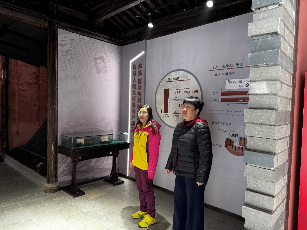 上午九时,女教师党员们怀着崇敬的心情走进位于余杭区鸬鸟镇的余杭抗日战争纪念馆。这座依托太公堂村“忠烈祠”重建而成的纪念馆,庄严肃穆,青砖黛瓦间沉淀着厚重的历史记忆。党员们依次步入“日寇暴行、惨绝人寰”“共赴国难、民族壮歌”“奋勇抗敌、中流砥柱”“历史胜利、永志不忘”等展区。一幅幅泛黄的历史照片、一件件斑驳的抗战文物、一段段珍贵的影像资料,生动再现了抗战时期余杭军民在中国共产党领导下同仇敌忾、共御外侮的烽火岁月。