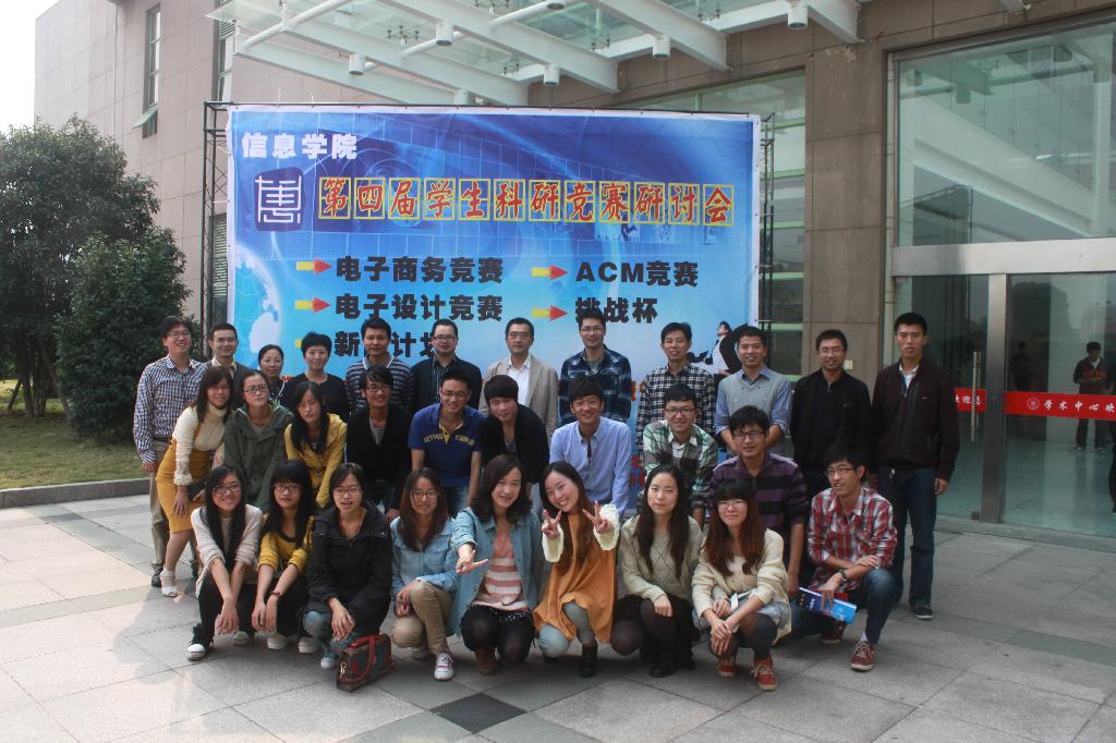 接下来,ACM程序设计竞赛、电子设计竞赛、电子商务竞赛及“挑战杯”科技学术竞赛四大赛事指导老师及获奖选手代表一一上台介绍竞赛特点,畅谈竞赛备战、实战经验,分享竞赛感受。老师们的专业解读给了每一位同学一个近距离了解竞赛的机会,更给在座的同学传递了坚定的信心,获奖代表感言让在场的同学真切的感受到科研竞赛离自己并不遥远,质朴又真挚的话语感动全场。最后,本次研讨会在热烈融洽的气氛中圆满结束。