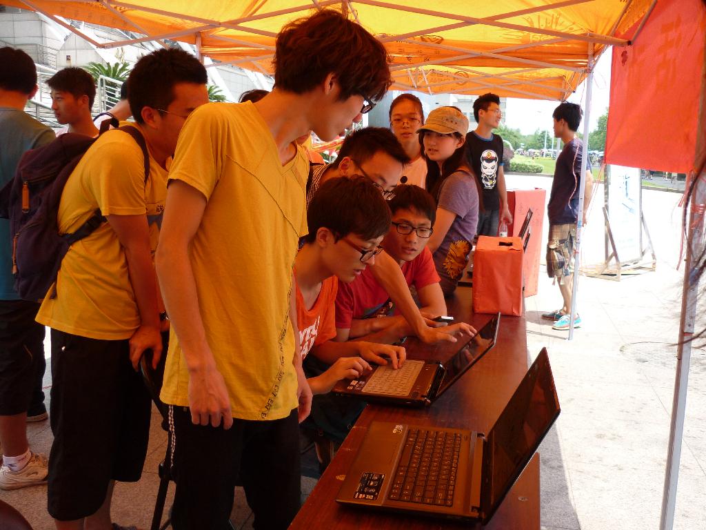 橘色的简易帐篷与夏季的炎炎烈日相互映衬。气温虽高,但带着自己的爱心涌入义诊场地来寻求帮助的同学却络绎不绝。未能把电脑带来的同学也纷纷在“上门服务登记处”详细登记,我们的工作人员会在3个工作日内进行上门服务。