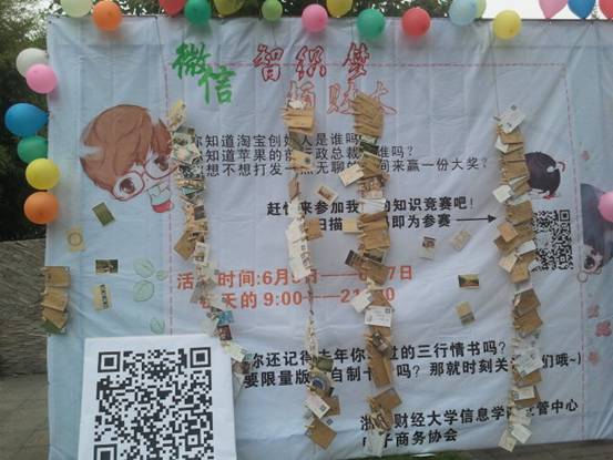 6月5日, 信息棋牌 APP 社管中心与电子商务协会联合举办了主题为“微智织梦,信扬财大”的趣味知识挑战赛。