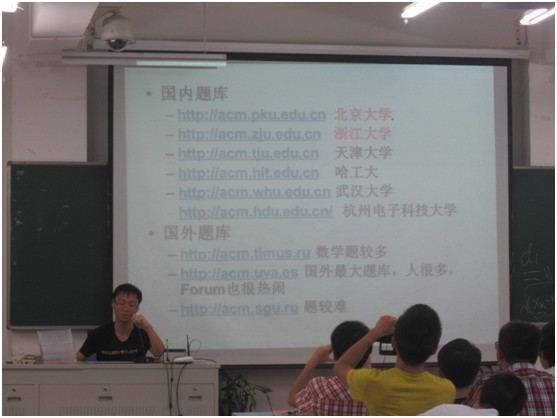 ACM协会在9302教室进行了第一次ACM讲座。以后每双周的星期五晚,都将准时开展ACM讲座,给同学们讲述ACM的相关信息,引导同学们对ACM更多的认识和了解,增加同学们对ACM的兴趣,并帮助提高他们的编程水平。
