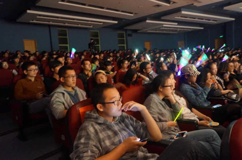 的学术一报报告厅却热火朝天。偌大的报告厅座无虚席,同学们手举荧光棒,共同见证了2013年信息棋牌 APP