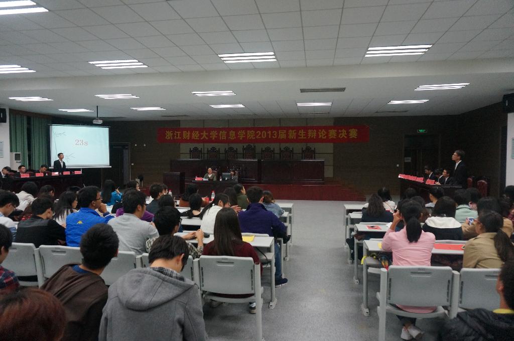 学生会学术部主办的2013级新生辩论赛隆重举行。本次辩论赛以“青春是否终将逝去”为辩题,在软件工程班和计算机二班之间开展,经过五个环节的激烈交锋后,由软件工程班代表的反方观点—青春终将逝去,赢得本次比赛,成为2013级信息棋牌 APP