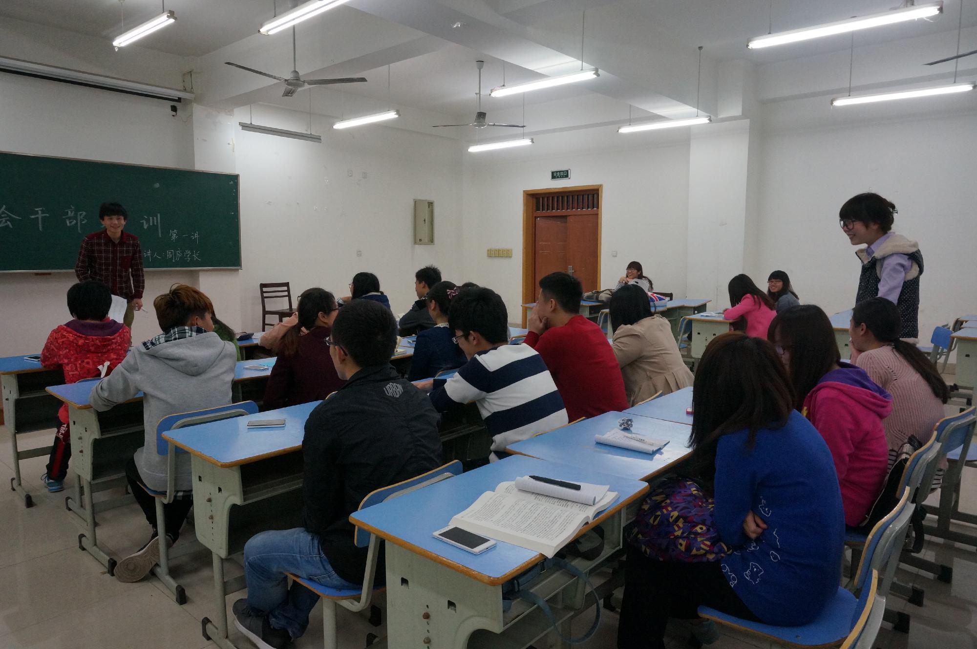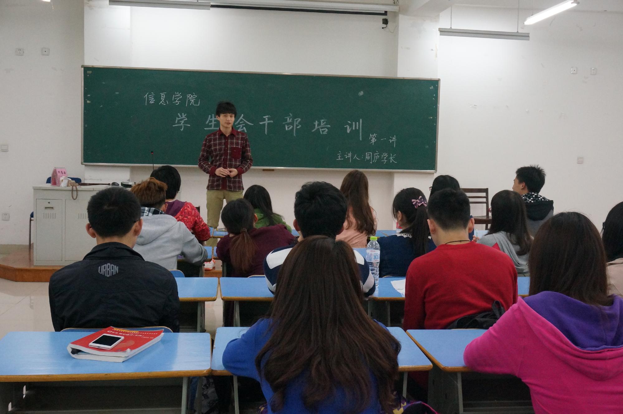 学生会干部培训第一讲。本次我们邀请到的是2010届曾任文艺部部长周庐学长来进行干事培训第一讲。