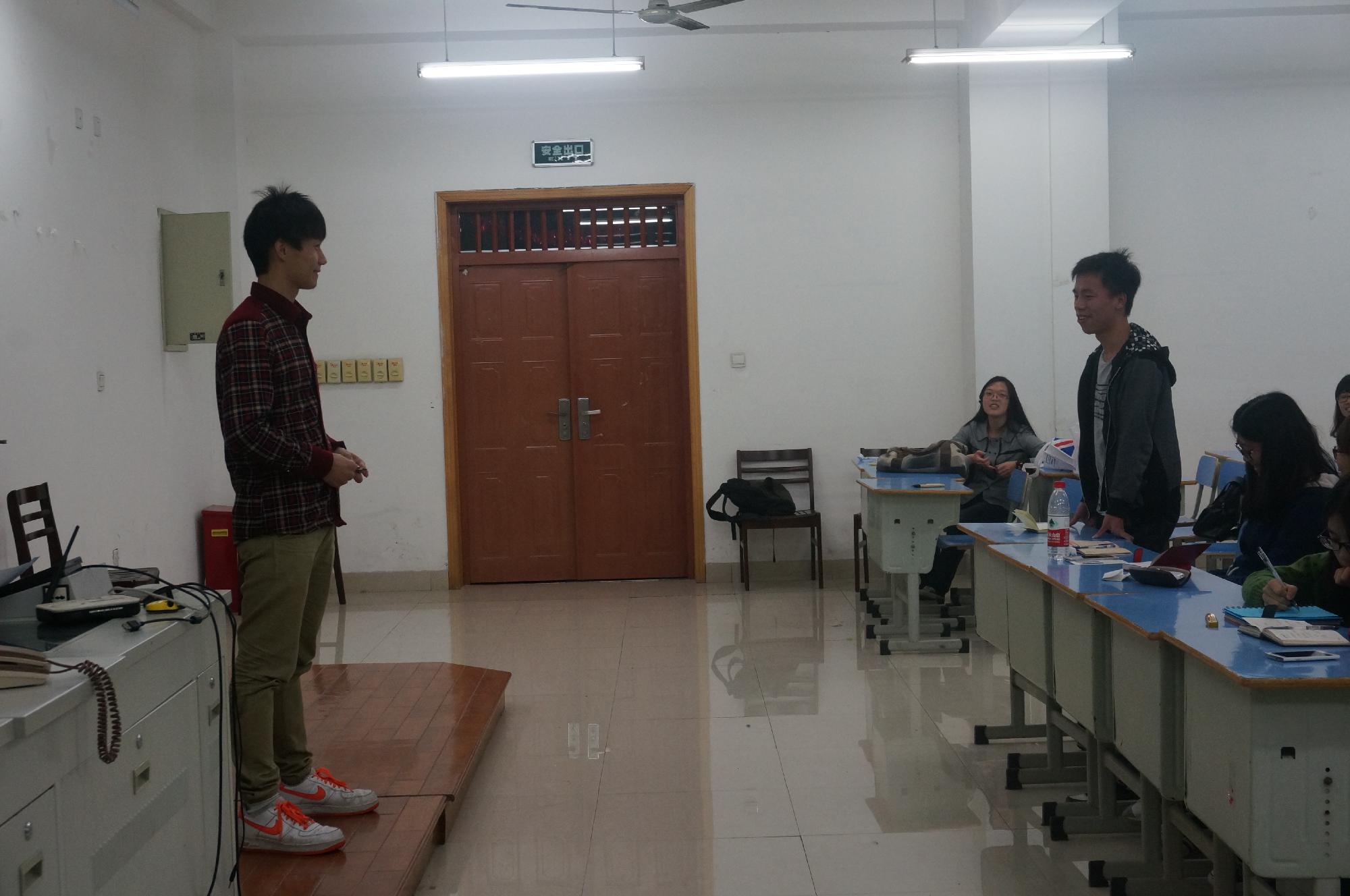 最后是提问环节。各个部门的代表陈述出自己的缺点和对学长提出问题。各个部门的陈述和提问都十分精彩,比如办公室的邹洁昊侃侃而谈,完整地向学长陈述了自己的疑问,体育部的修宇航很清楚地了解了自己的优缺点并且明确了自己只想当副部的愿望等等,学术部,棋牌APP,外联部、自律部、广宣部等等学生会部门代表都认真地提出了自己的问题,学长也一一地给出了自己的意见和看法。