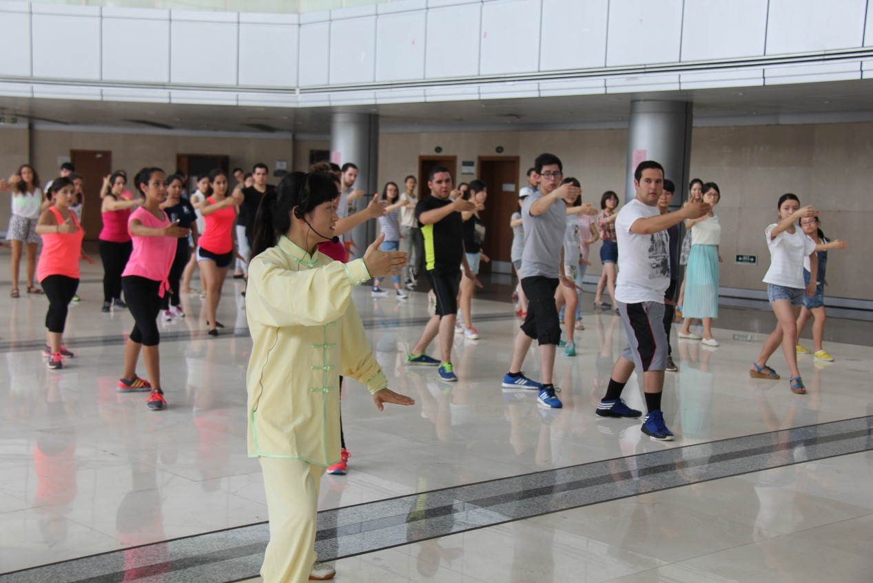 快乐的时间总是很短暂,很快太极拳的交流学习已接近尾声,伴着些许遗憾,更多的是满足,学生们一起结伴恋恋不舍的退出体育馆,还互相交流着学习太极拳的心得。