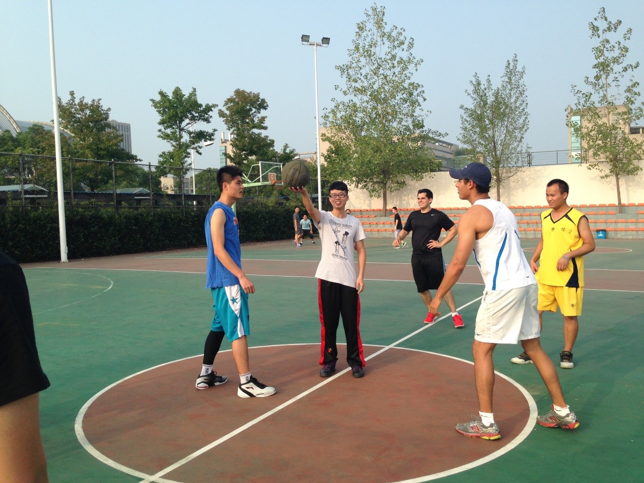 第一节比赛时,我们队员果然不负众望,凭借高超的技术以及对速度恰到好处的掌控,以10:2的分数领先。但也正是由于这样的快攻,我们队员的体力很快下降,又随着两队的激烈拼抢,终使比赛以18平结束。下半场比赛美国交流生展开了反击,其中要数Javier的三分球投得最棒。那篮球每每到了他手中,就好似被施了咒语一般,一个紧贴着一个进了篮筐,直叫在一旁观看篮球比赛的女学生们欢呼不已。最终,还是美国交流生占了上风,以28比26取得了本场友谊赛的胜利。