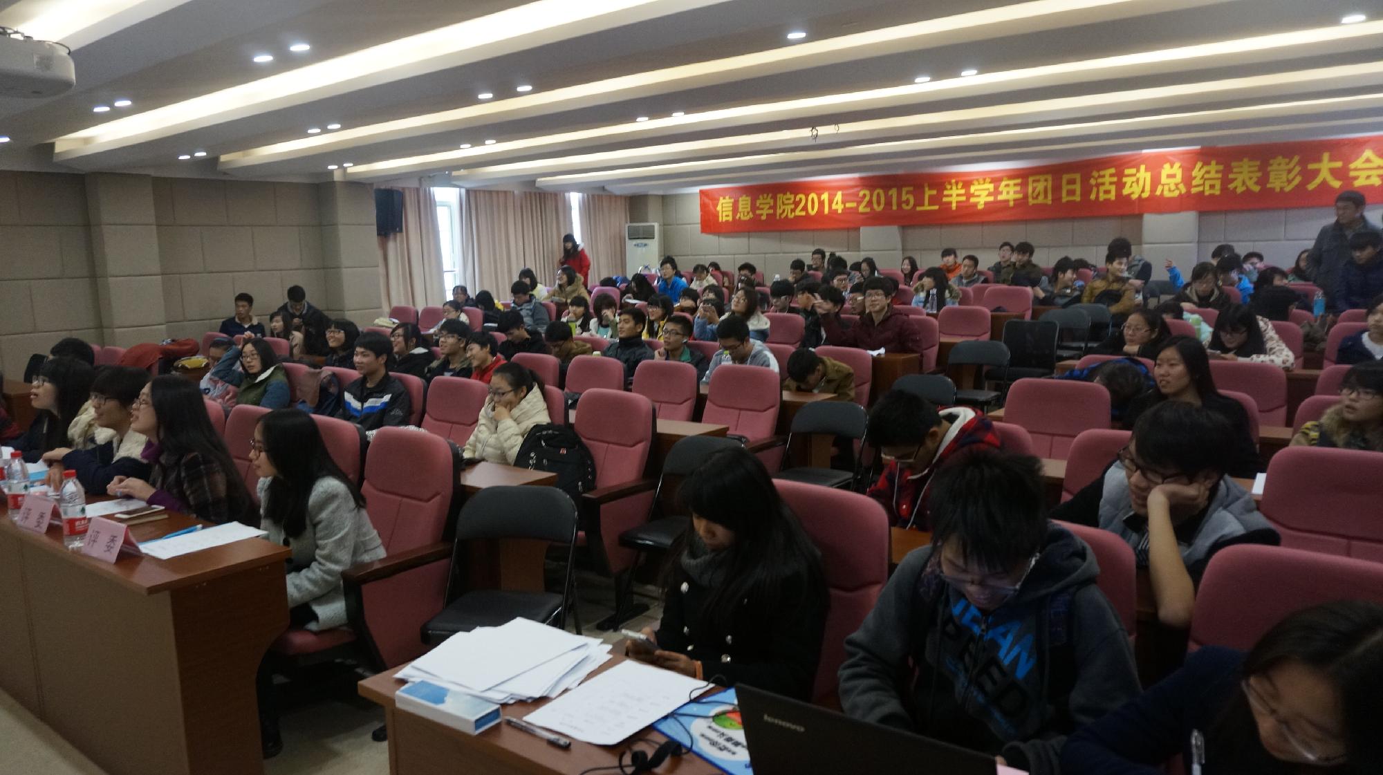 本次表彰大会包括团日活动风采展演和评比表彰两项内容。在主持人叶鹏翼的精彩主持下,各个班级团日部精心准备的节目也陆续上演。音乐剧、歌曲联唱、魔术、舞蹈、情景剧应有尽有,值得一提的是让人记忆深刻的太极拳和双截棍表演。各班级团支部围绕“我的价值观,我的中国梦”团日活动主题,创新形式,创作出许多生动、丰富、新颖,贴近大学生活,蕴含信息特色、财大特色的节目,让人耳目一新。在整场表演中,现场气氛活跃,观众的笑声和掌声此起彼伏……评选接近尾声,也是最激动人心的时刻,在综合评委团的打分及书面材料分数后,一二三等奖最终出炉,其中13软工、13计算机1班、13信息1班、12软工、14软工荣获一等奖。