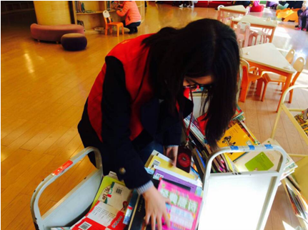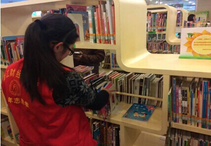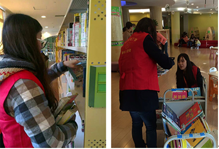 统一集合出发,经过两小时的公交车程,到达杭州少儿图书馆,与工作人员进行了短暂的交接之后,便开始了一天忙碌的工作。在这里,他们是书本的搬运工;在这里,他们是来借阅图书人眼中的可以求助的人;在这里,他们是童真孩子眼中的哥哥姐姐。当看到孩子们找到心仪的书本时,那稚气的笑脸,志愿者们知道“一切都值得”。当看到年迈的老人为孙子借到满意的书籍时,那一声声诚挚的感谢声,让志愿者们内心温暖,因为那不仅仅是一个老人对孩子的疼爱,更是对我们志愿者工作的肯定。因为有这些感动,支持者志愿者们,一路前行。